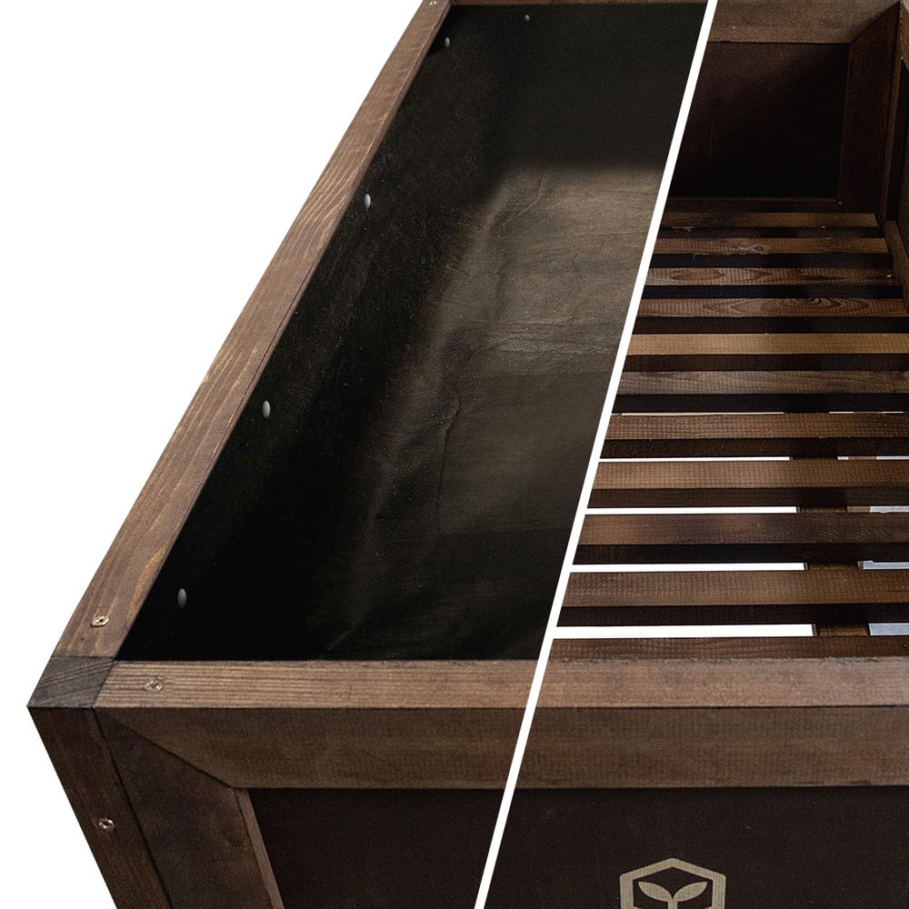 Nasze podwyższone grządki na balkon wykonane są z wysokiej jakości impregnowanego drewna świerkowego, które gwarantuje odporność na warunki atmosferyczne, takie jak deszcz, wiatr czy mocne nasłonecznienie. Dzięki temu mamy pewność, że zielnik podwyższony Vintage będzie świetnie wyglądał przez wiele lat.