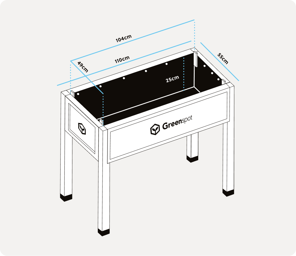 Zawartość przesyłki: Zielnik podwyższony, instrukcja, komplet wkrętów do drewna, pinezki, agrowłóknina, plastikowe nasadki na nogi.